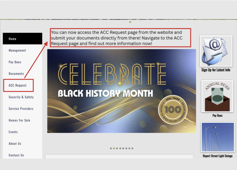 Check out the ACC Request page today to get information about the process, download the architectural control request form, and submit your documents all in one place. It's a one stop shop to ensure that the changes you need to make are submitted, reviewed, and decided on by the Architectural Control Committee!