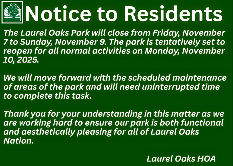 Join the Laurel Oaks NextDoor online community today to stay up to date!