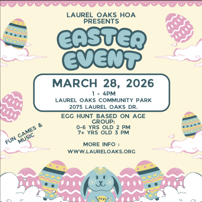 We need your help to bring the fun and excitement of Easter to Laurel Oaks! Our community Easter event is just around the corner, and we’re looking for enthusiastic volunteers to assist with activities like the egg hunt, bounce house supervision, craft stations, and more. Your time and effort will make a big difference in creating a memorable experience for families and children. This is a great opportunity to meet neighbors, give back, and be part of something truly special. Sign up today and help us make this Easter event a hoppin’ success! 🐰🌸🥚